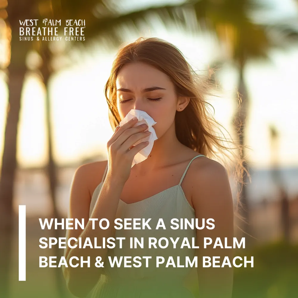 Florida’s hot, humid summers can worsen sinus problems for residents in Lake Worth and Wellington, triggering symptoms like congestion, pressure, and postnasal drip. Common culprits include grass and weed pollen, mold, and dust mites. At West Palm Beach Breathe Free, ENT specialists recommend hydration, dehumidifiers, saline rinses, and allergen control to manage symptoms. For ongoing issues, treatments like allergy testing, immunotherapy, or balloon sinuplasty can offer long-term relief and help you breathe easier all summer.